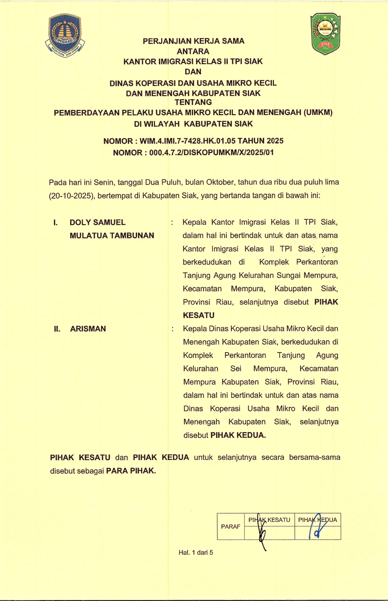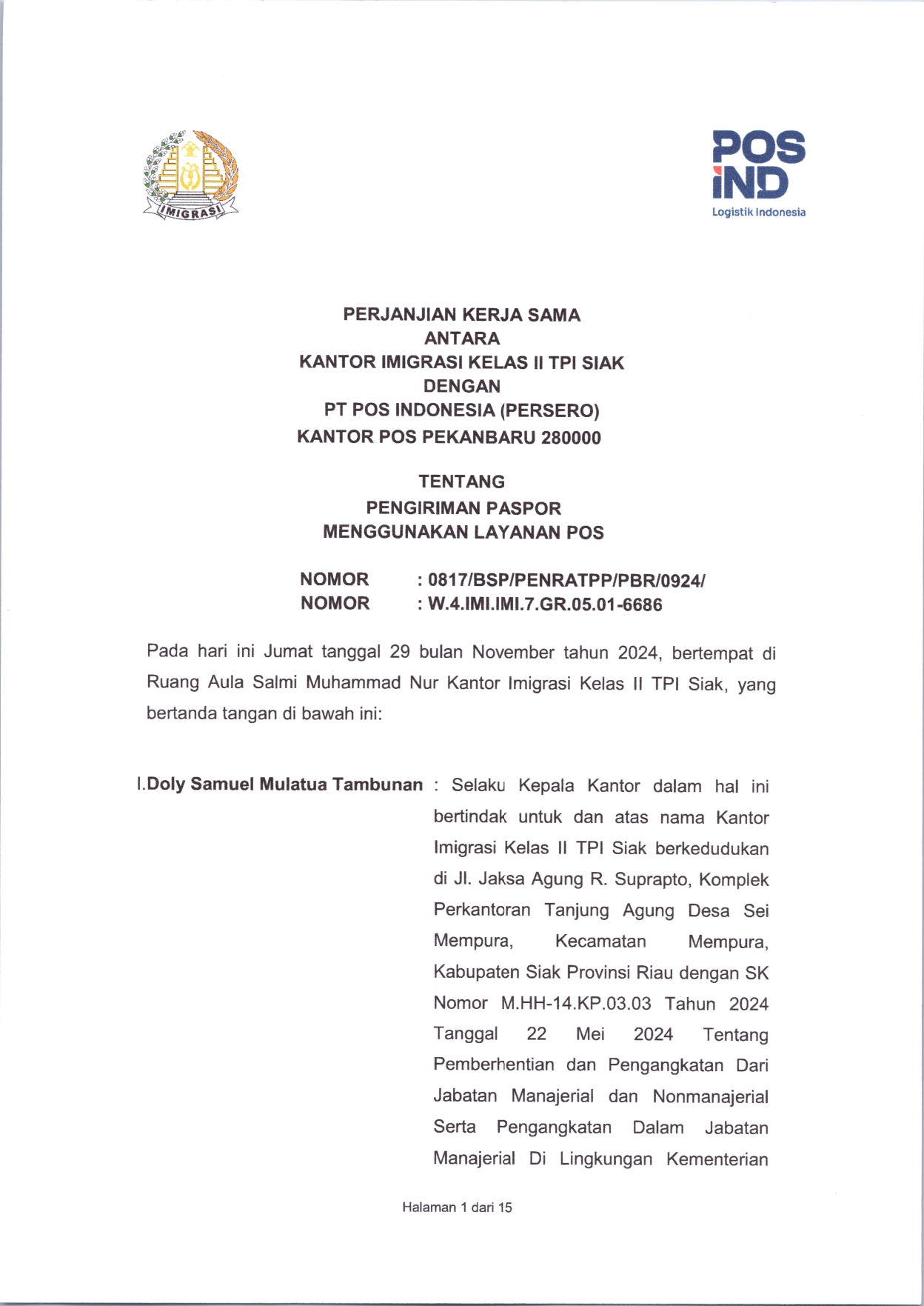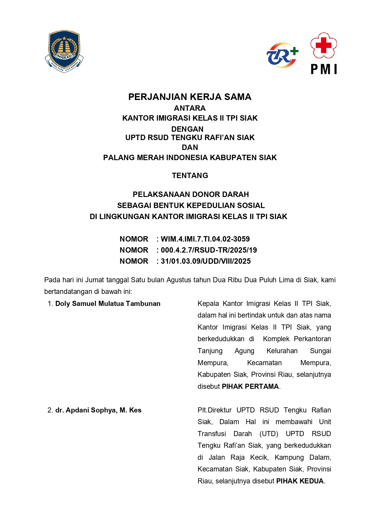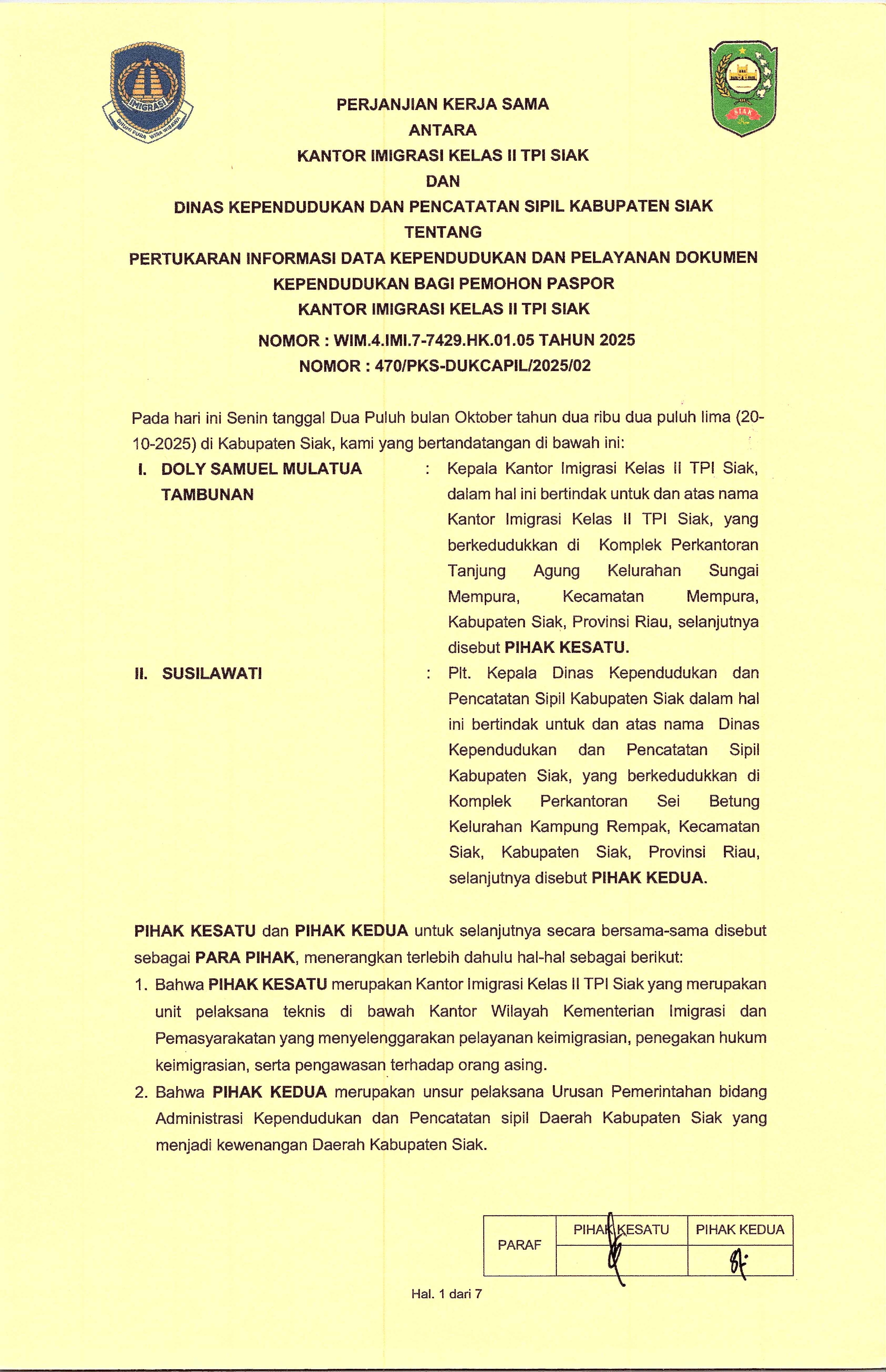 1. Kantor Imigrasi Kelas II TPI Siak belum menguasai atau mendokumentasikan informasi yang dimohon;